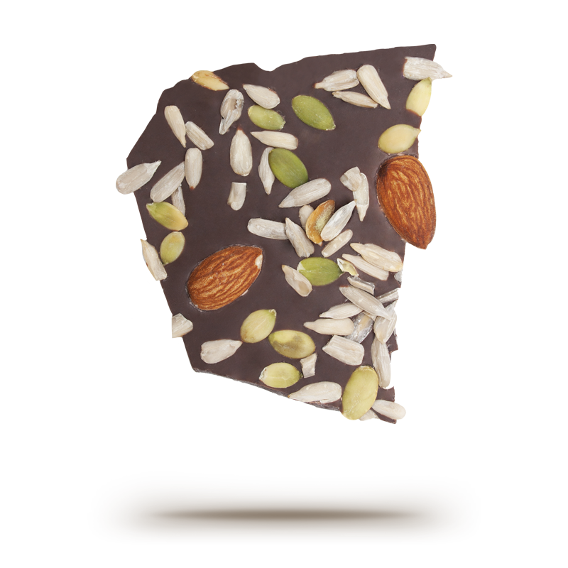 55% Cacao Chocolate with roasted almond, pumpkin seeds & sunflower seeds