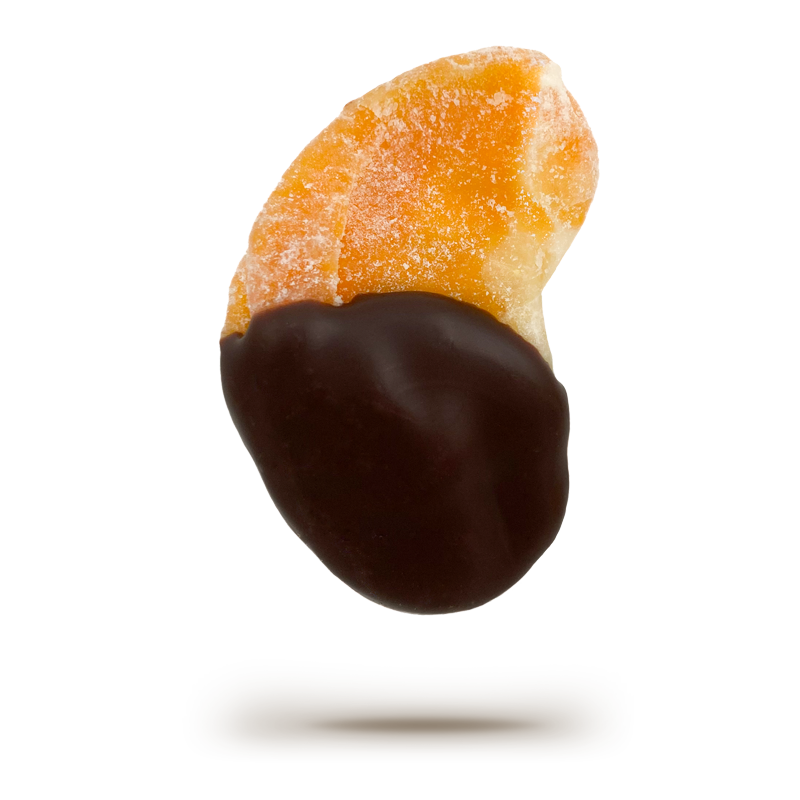 Crystallized tangerine dipped in 55% cacao chocolate.